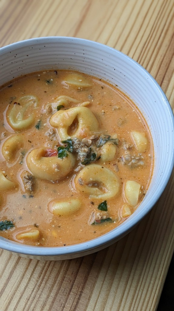 Here is a yummy take on tortellini. I made a soup instead of the standard pasta and sauce…
