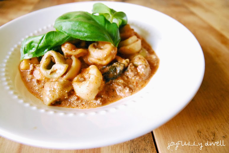 Here is a yummy take on tortellini. I made a soup instead of the standard pasta and sauce…