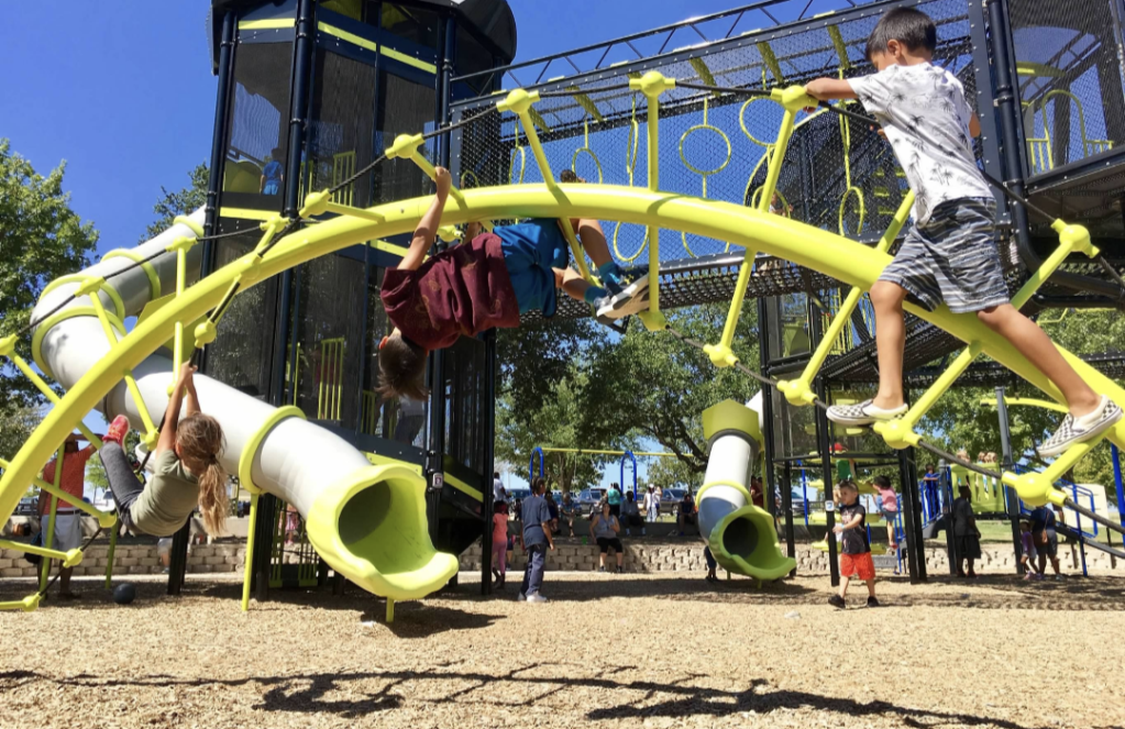 Joanne Land Park offers multiple amazing play structures for climbing, a zip line, swings, and a disc golf course.