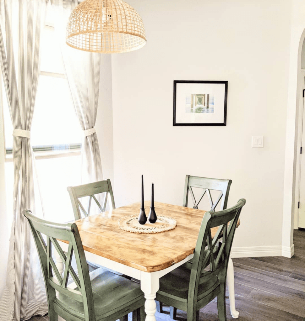 The previous owners of my kitchen breakfast table left it beside a dumpster. We gave it a super sanitary scrub, sanded it down a bit, painted the legs and sealed the top, and voila! We’ve had it and used it for well over a decade. It could have been turned to scrap wood, but we saw it’s potential and put it to good use. The chairs were also discarded from someone moving and no longer needing them.