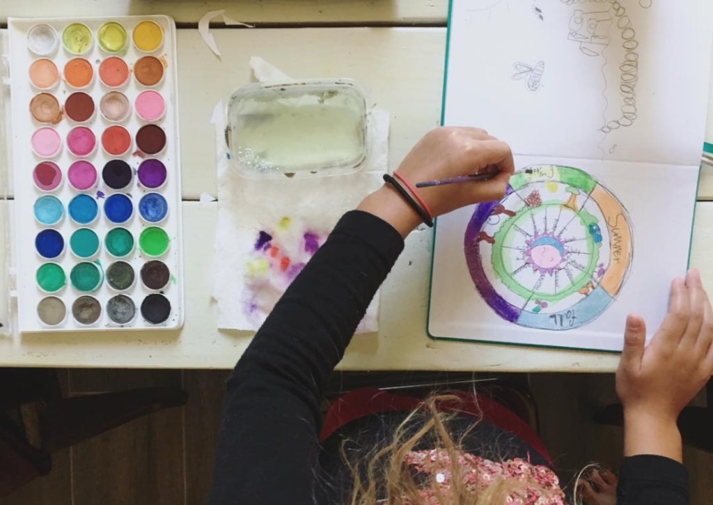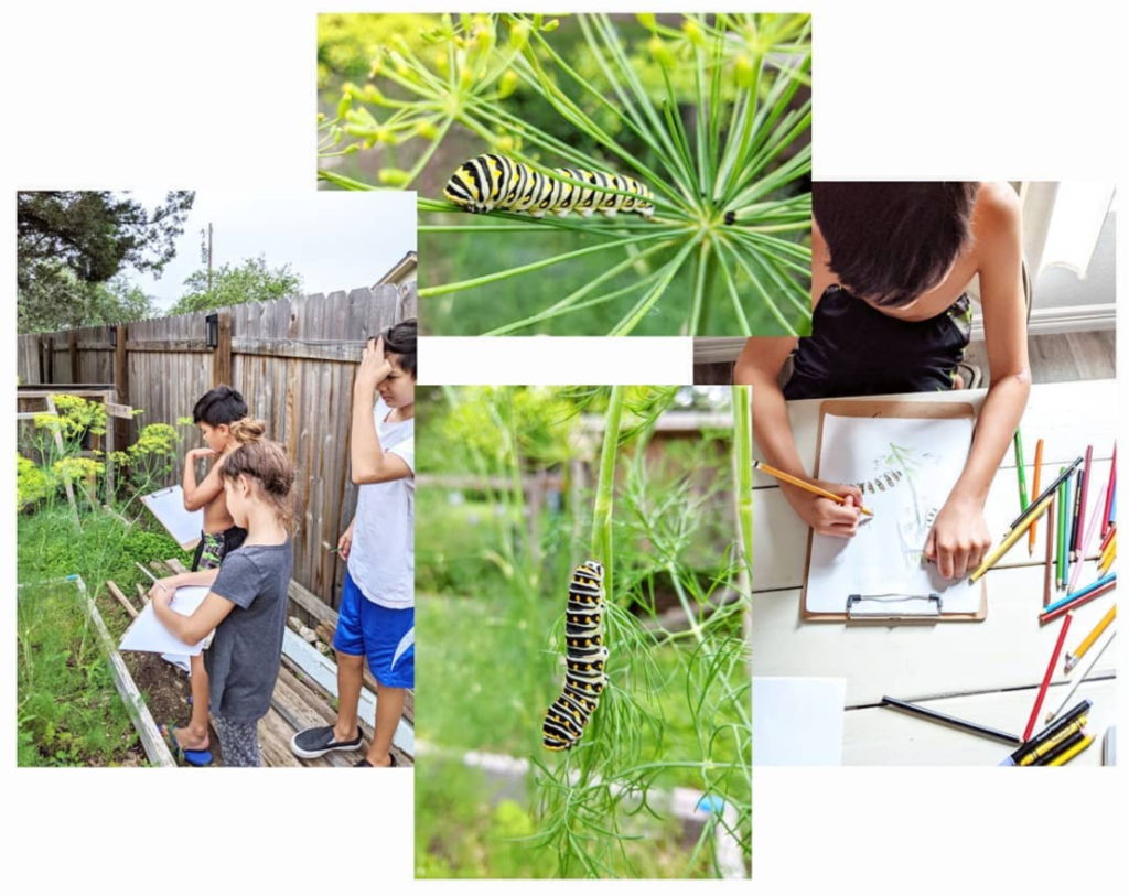 The kids help with measuring and building (Math), they journal about insects they find (Writing), and they research companion plants to help with organic pest control (Science). They also keep track of seasonal changes and growth using a phenology wheel (Art / Writing / Science).