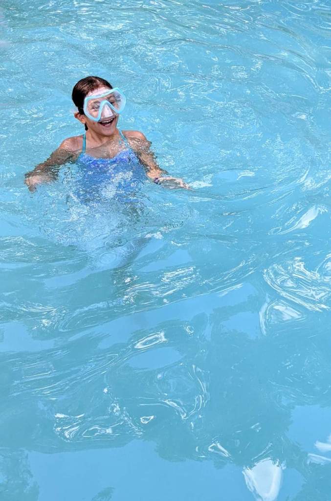 Number 7… If all else fails, add water. Discomfort and irritability tend to go hand in hand with scorching days. Whether it’s running through the sprinkler or jumping in a lake, pool, river or stream… water ALWAYS seems to help! I keep a swim bag ready with extra goggles and pool toys so we aren’t scrambling to get things together when we just want to cool down already.