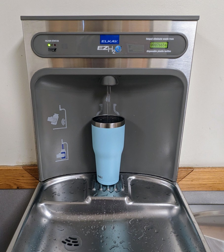 Firstly, I don’t want to be purchasing drinks at every stop because they’re whining that they’re thirsty. Secondly, I hate the waste plastic water bottles create and many places now have convenient water bottle refill stations that are free!