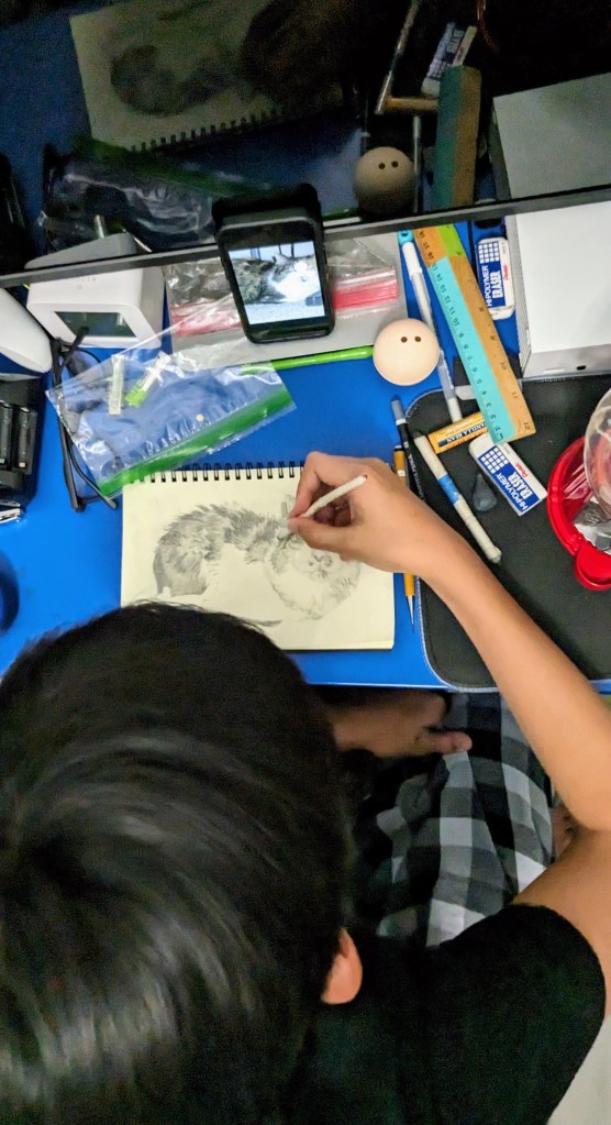 Art can be found in so many unexpected places as well. To expand on artistic abilities at home, we have our children journal about their field trip outing or experience. This typically leads them to further investigate and research a topic they found interesting, thus expanding their understanding and knowledge.