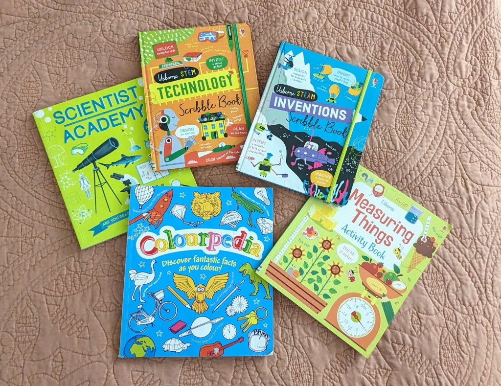 I highly recommend books from Usborne. They are visually appealing, and the activity books are amazing for hands-on, out-of-the-box learning. We have used many math and science books from them that incorporated art projects in the lessons.