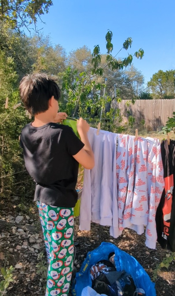 On days when the sun is hiding, and we opt to run the dryer, wool dryer balls are the best option to reduce static and help lessen drying time. I like to add a few drops of essential oils to them for a non-toxic way to add freshness and scent in lieu of chemical-laden dryer sheets.