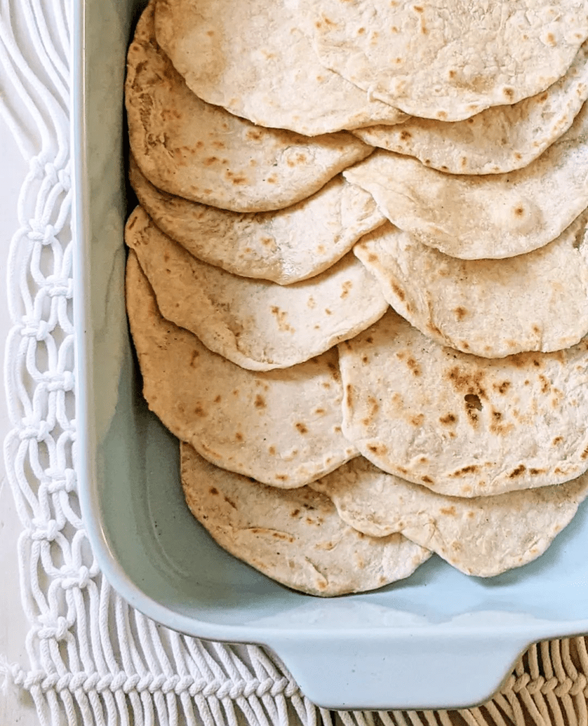 I never knew how easy it was to make tortillas until I finally just went for it. Simple ingredients too – 3 cups flour, 1 tsp salt, 1 tsp baking powder, 1/3 cup EVOO, 1 cup warm water – that’s it! Mix together, roll into 12 balls, let the dough rest about 15 minutes, roll out with a pin and heat each one on a medium heat pan approx. 2-3 minutes on each side. Minimal ingredients also means minimal money spent, and with most of these ingredients typically on hand in most kitchens, less vehicle emissions.