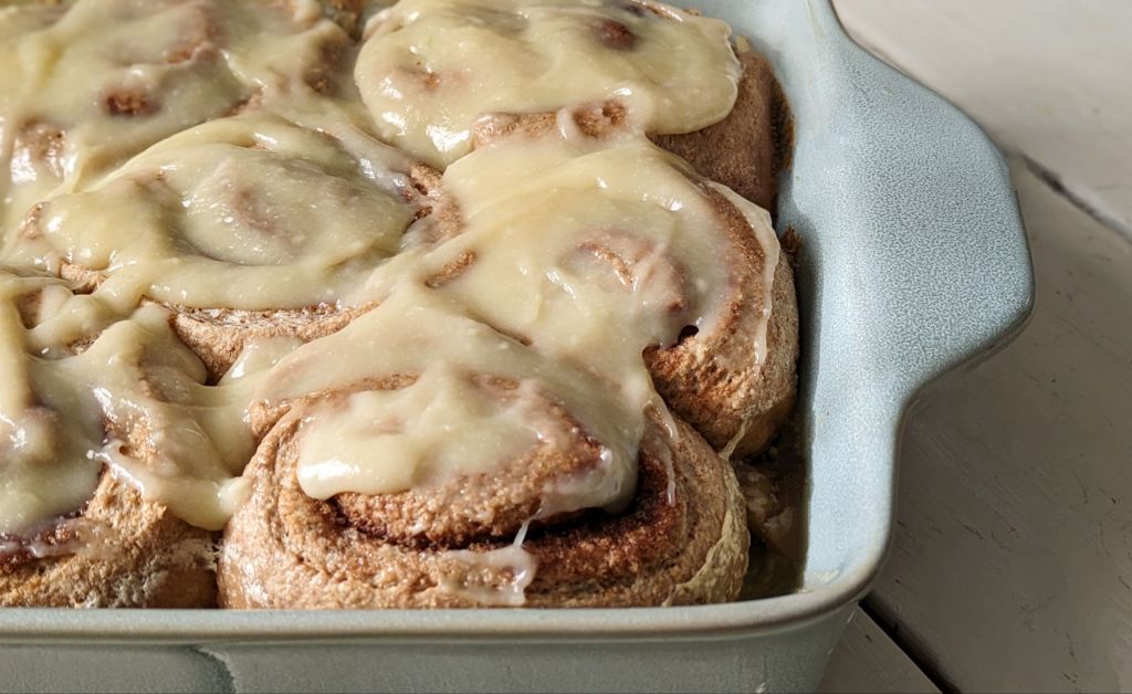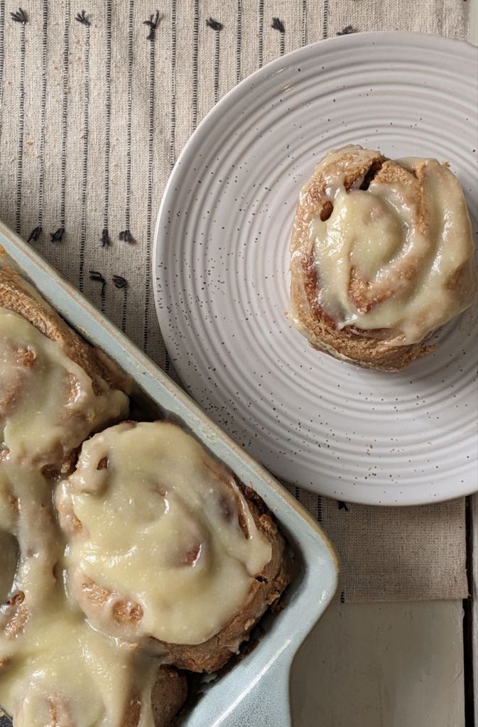 Whip together with hand mixer until smooth. Dollop over warm cinnamon rolls and enjoy!