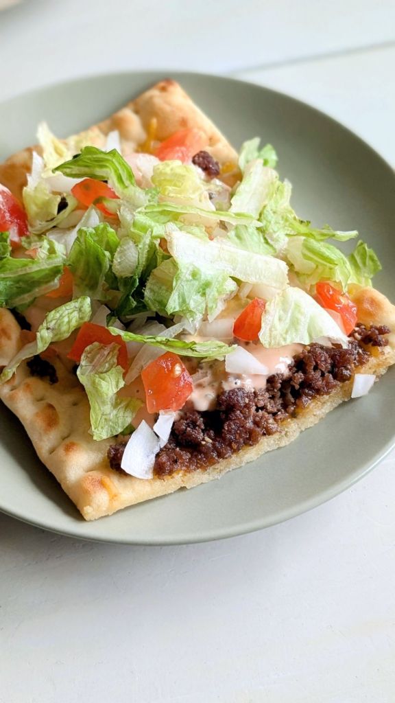 A new favorite in this house is Flatbread Cheeseburger Pizzas. Brown 1 lb. of ground beef in a pan and season with salt and pepper. While meat is cooking prep your preferred toppings. We like cheese, lettuce, tomatoes, onions and my homemade Thousand Island dressing which consists of avocado mayo, ketchup and a dollop of pickle relish (no measurements, just go with God and see what you like mixing it up). Once the meat is cooked layer on individual flatbread pieces starting with the cheese first – it acts as a binder keeping the meat from falling off.